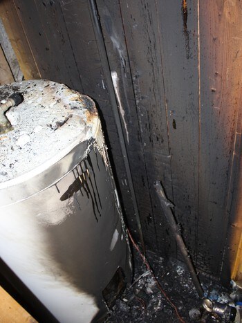 Skadene etter brannen var omfattende. Det var brannskader i veggene rundt der varmtvannstanken stod, og det var også store sotskader i takene inne.