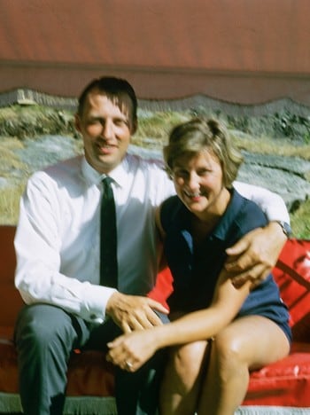 Kronprinsesse Sonja og kronprins Harald strålte i offentligheten etter at kong Olav hadde gitt dem tillatelse til å gifte seg. Foto: Privat / Det kongelige hoff